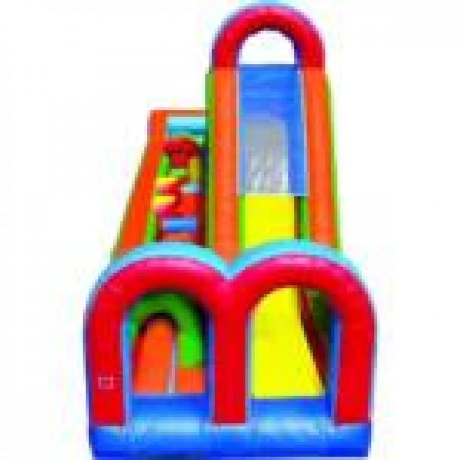 The Turbo Rush Mini B Obstacle Course will keep the action going all party long, as they make their way though, under, around and over the many obstacles before making the turn to go up the climbing wall and sliding down and exiting right where they started. Look for the Turbo Rush for side by side racing action.