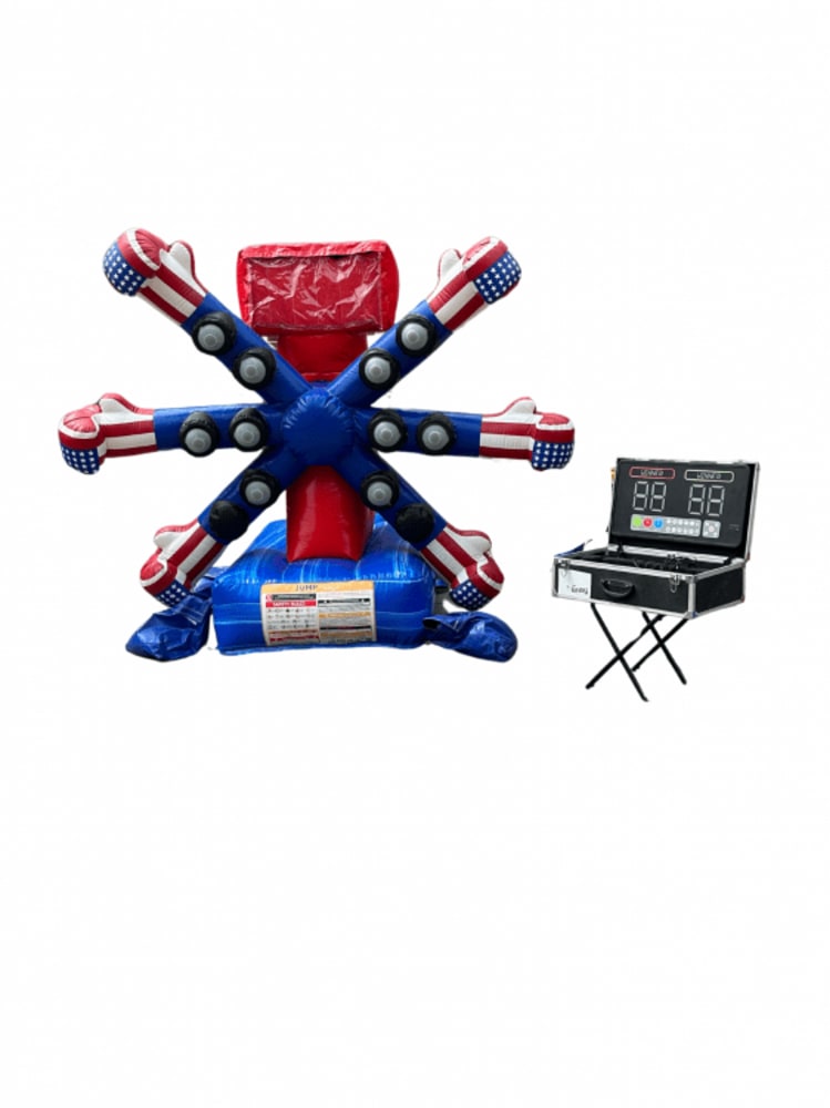 Players put on the included gloves and face off in the inflatable arena, where the IPS system randomly lights up targets. Your mission? Hit as many lit targets as you can before time runs out! The system keeps score, so you’ll know who’s the real champ.